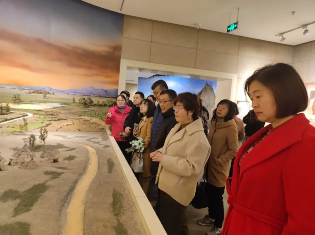 在城子崖遗址博物馆,调研团一行全面了解龙山文化发展脉络及城子崖博物馆建设运行情况。按照历史发展顺序,在博物馆内先后经过“龙山破晓—西河、小荆山遗址”、“文明之星—城子崖遗址与龙山文化”、“考古圣地—城子崖遗址的发现与发掘”、“济南寻根—东平陵城”等展厅,深入了解龙山源远流长的农耕文化,并就龙山文化起源、黑陶制作工艺、遗址挖掘保护等方面与工作人员进行了交流和沟通,详细了解了龙山农耕文化及农业生产发展脉络。