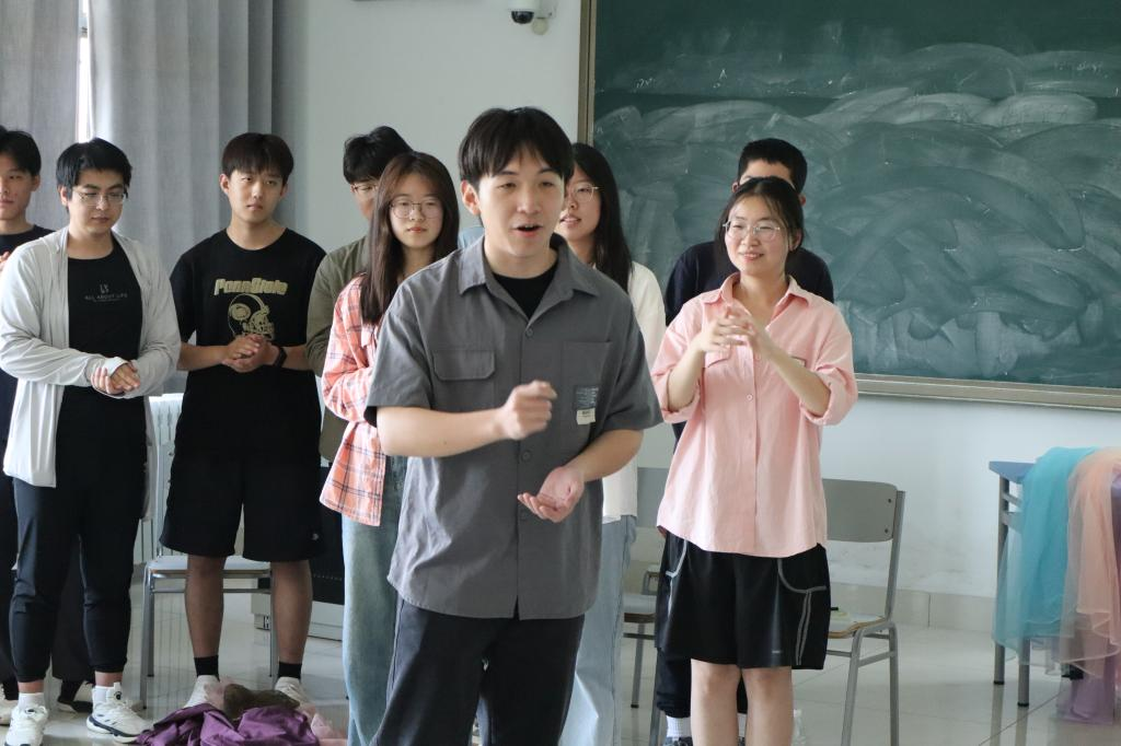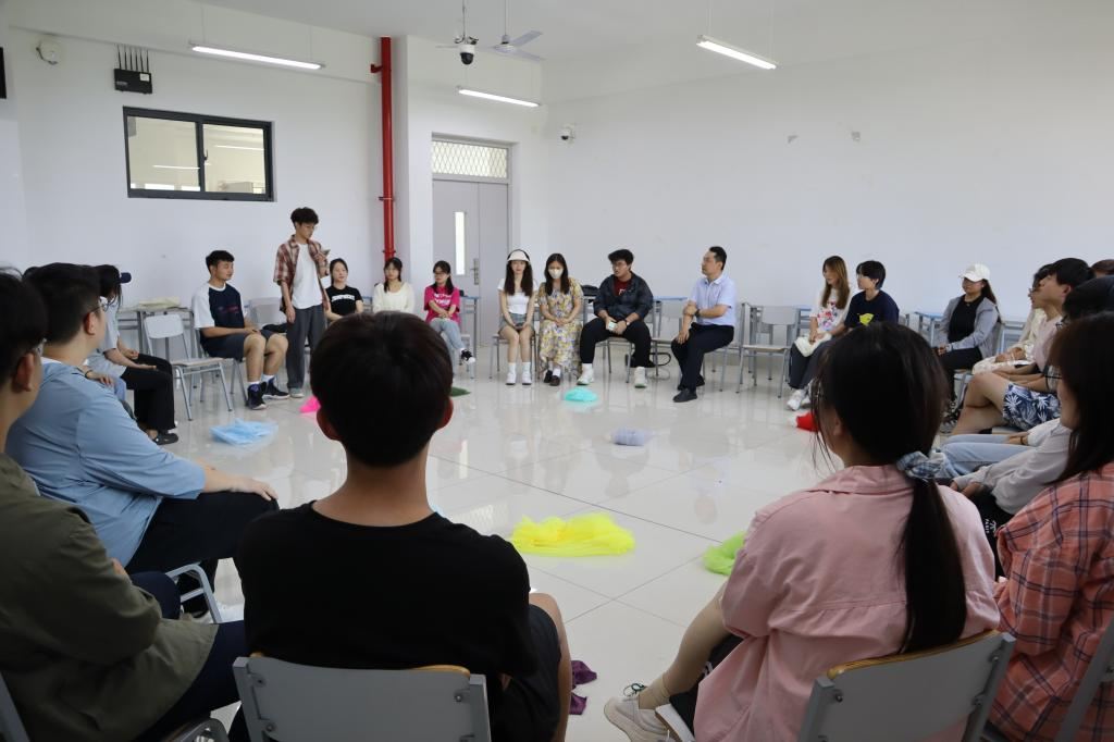 在暖身环节——社会计量《家乡美》《相似圈》,刘洪涛组织同学们根据自己家乡的方位与省份站在不同颜色彩纱代表的位置,同学们分别介绍了自己的家乡,展示了自己民族独特的语言以及各省份有代表性的地方特色表演形式,活动拉近了天南海北同学们之间的距离。刘洪涛对各民族同学带来的才艺给予了高度肯定,提出大家都要增强民族自信心与自豪感。