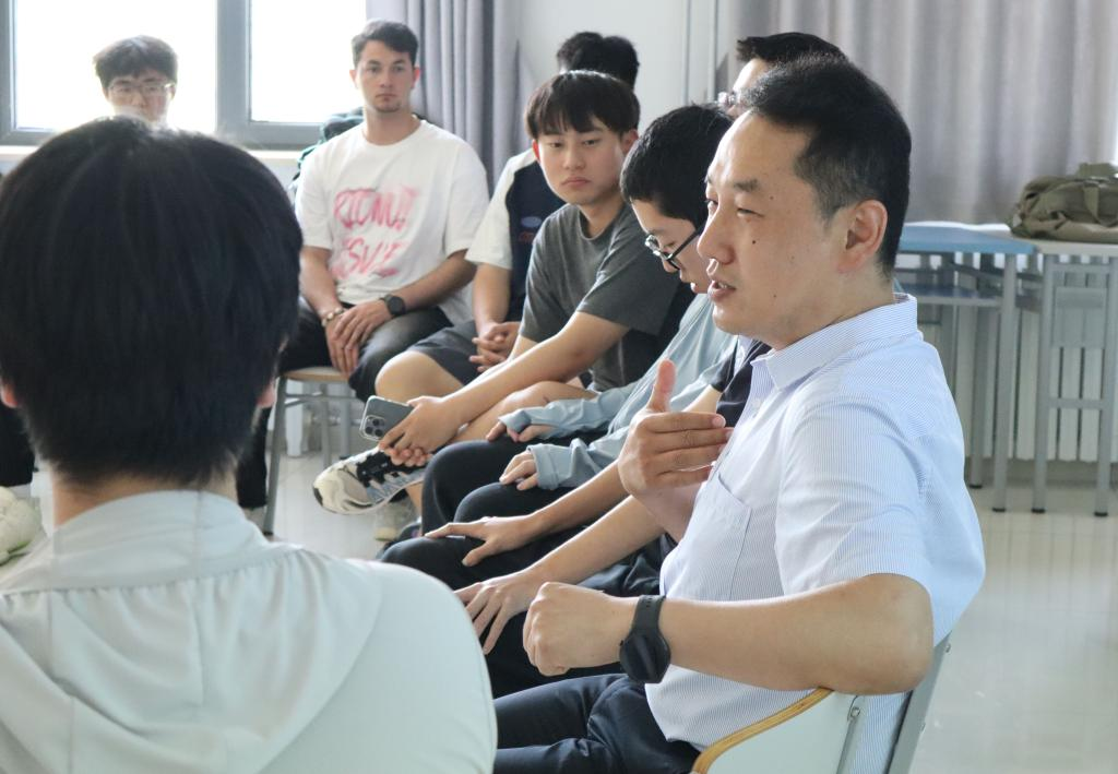 刘洪涛向同学们进行了简短的自我介绍,并为同学们播放视频《这里是呼伦贝尔》,向大家介绍了他的家乡,讲述了自身的成长过程中所经历的多民族相互交融,与同学们围坐在一起欢快交谈,拉近了与现场各民族同学们交流的亲切感。