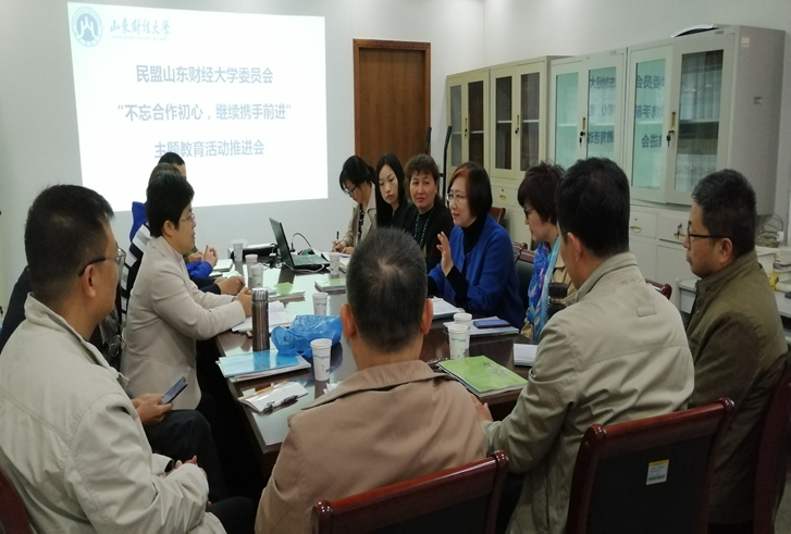 近日,为了更好地响应民盟中央和民盟省委“不忘合作初心,继续携手前进”主题教育活动的部署要求,丰富教育活动形式,深化思想政治共识,总结和发扬11月1日冀鲁边区革命纪念馆主题教育活动成果,民盟山东财经大学委员会组织盟员召开“不忘合作初心,继续携手前进”主题教育推进会。盟员们认真学习了《中国共产党第十九届中央委员会第四次全体会议公告》、《中共中央关于坚持和完善中国特色社会主义制度、推进国家治理体系和治理能力现代化若干重大问题的决定》、民盟中央印发的《民盟中央关于开展“不忘合作初心、继续携手前进”主题教育活动的决定》、《民盟山东省委深入开展“不忘合作初心、继续携手前进”主题教育活动实施方案》精神,对前期工作进行了总结,对下一步推动“不忘合作初心,继续携手前进”主题教育活动进行了具体安排。通过主题教育活动,盟员们进一步凝聚了共识,提高了政治站位,提升了履职能力。大家一致表示要建有用之言,献务实之策,做中国共产党的“好参谋、好帮手、好同事”。
