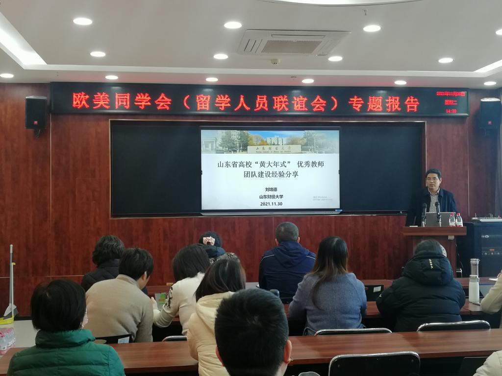 11月30日下午,校欧美同学会(留学人员联谊会)专题报告会在燕山校区举行,欧美同学会会长刘培德教授做了山东省高校黄大年式教师团队建设经验交流的专题报告,报告会由校党委委员、统战部长邓迎迎主持,校欧美同学会会员和统战部全体工作人员参加了此次报告会。